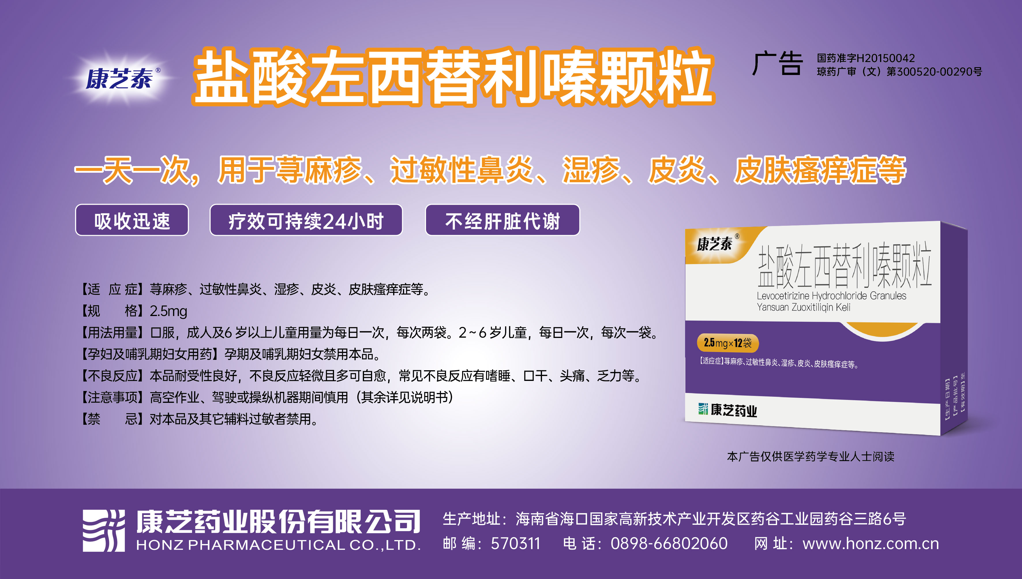 关于康芝泰®盐酸左西替利嗪颗粒