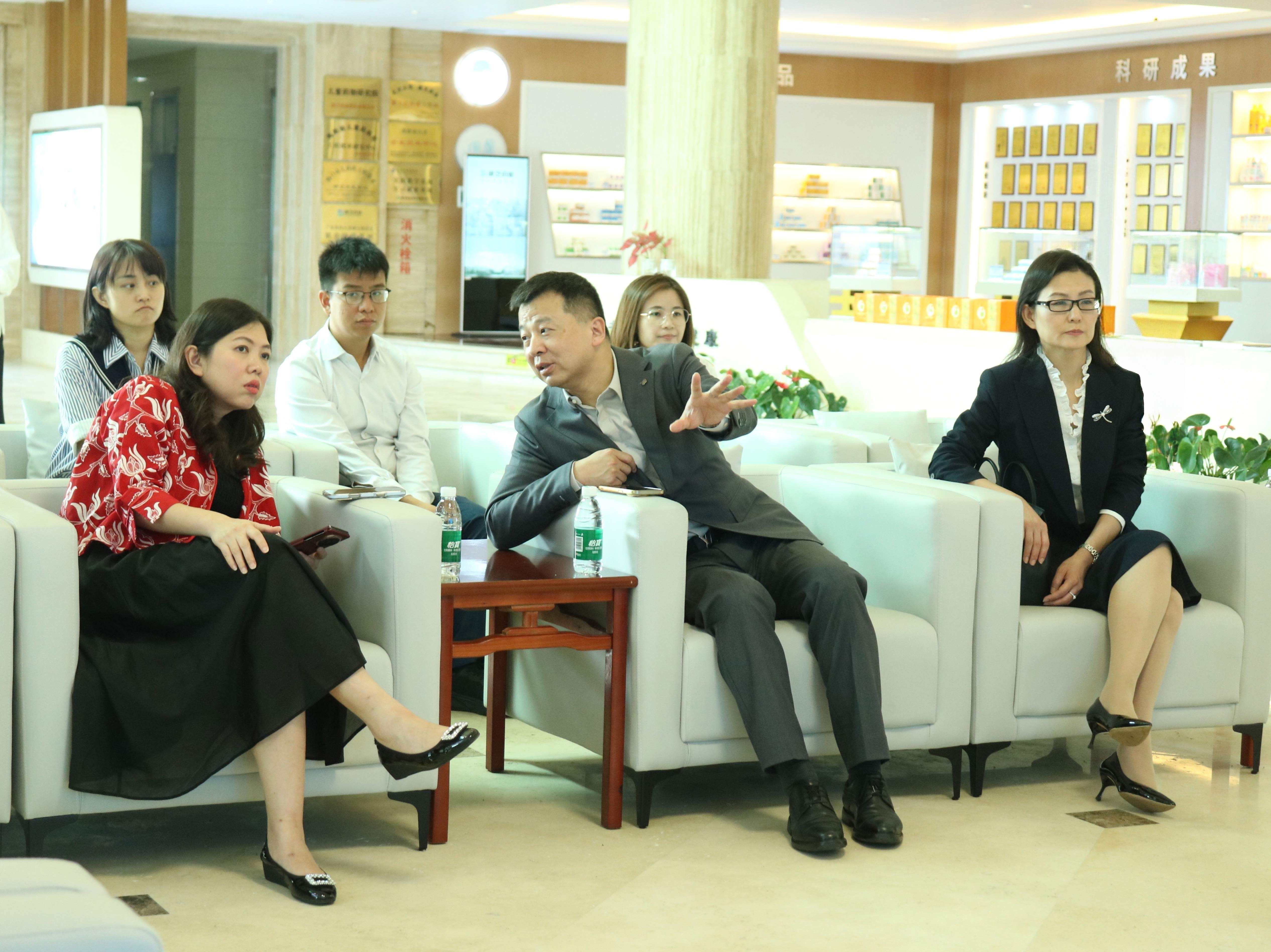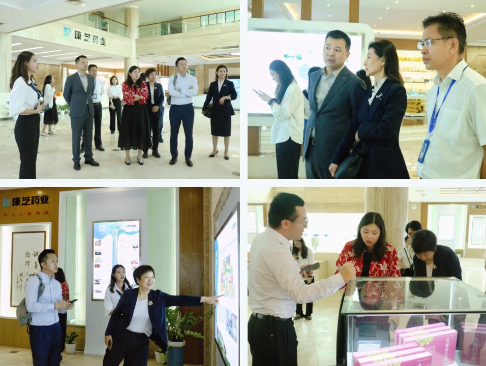 印尼工商会中国委员会一行首先参观了康芝药业的企业文化展厅,详细了解了公司在药用植物研发、生产和销售的产业布局优势,并对公司止咳橘红颗粒、贞蓉丹合剂、参梅养胃颗粒、柴黄清热颗粒、小青龙颗粒、强力枇杷露等明星中成药制剂表达了浓厚的兴趣。