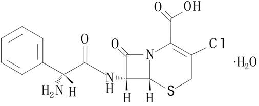 化学名称:(6R,7R)-7-[(R)-2-氨基-2-苯乙酰氨基]-3-氯-8-氧代-5-硫杂-1-氮杂双环[4.2.0]辛-2-烯-2-甲酸—水合物