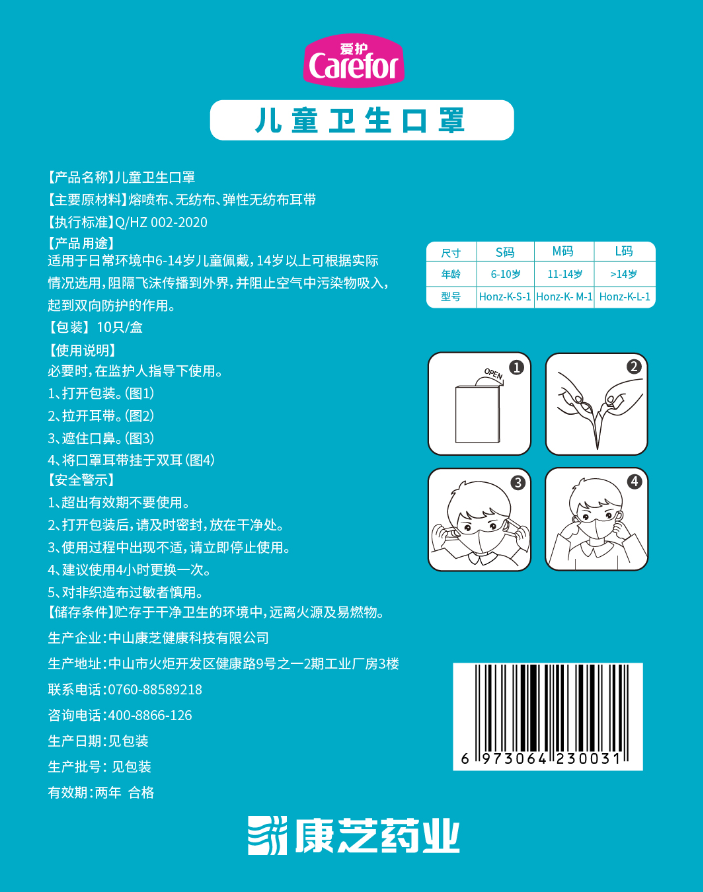 保护呼吸 匠心之作 1.三层防护; 2.资质齐全; 3.专业检测; 4.康芝精制。