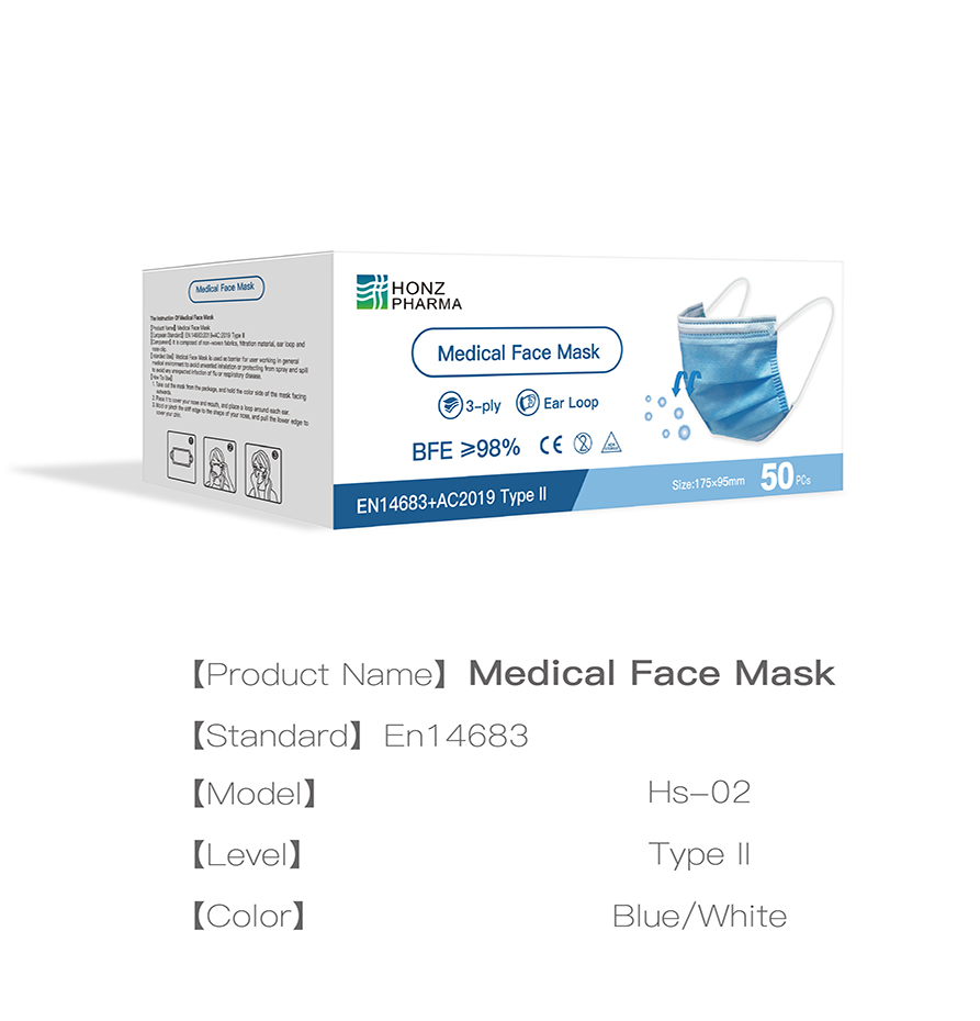 ·EN14683:2019 +AC:2019-Type I,Type II ·3-ply, Ear Loop ·Composed of Non-woven fabric and Melt-blown fabric